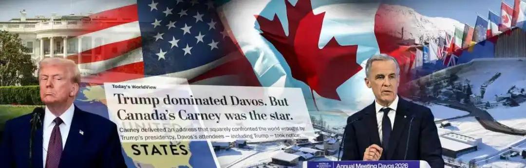 卡尼与特朗普的这一轮争端,始于瑞士达沃斯世界经济论坛。1月20日,卡尼带着自己亲自撰写的演讲稿,在这场汇聚全球精英的盛会中发表演说,当众反对特朗普关注的多个核心议题,并在演讲中指出二战后建立的基于规则的国际秩序正在消亡,他形容今天的世界弱肉强食,呼吁各国领导人必须面对现实。虽未直接提及特朗普,但矛头几乎均指向美国现任政府。