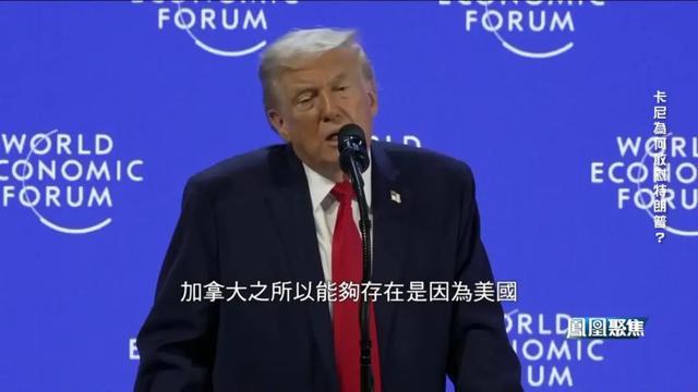 1月20日,启程赴达沃斯之际,特朗普在社交媒体上发布了一张经过篡改的图片,画面中加拿大、格陵兰岛和委内瑞拉都被美国国旗覆盖。来到达沃斯后,倍受刺激的特朗普,开始对卡尼发起“攻击”。